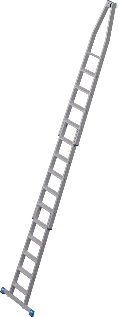 - A létra felső tagja fali vezetőgörgőkkel és kopásálló, puha gumi anyagú érintkező blokkal, ékkivágással, mely házsarkokra és ablakprofilokra helyezhető.
